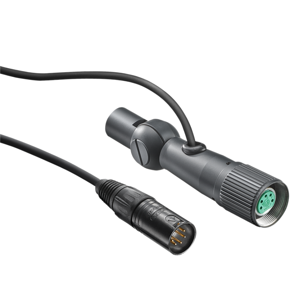 Microphone cable with rotatable swivel mount and XLR 5 connectors.