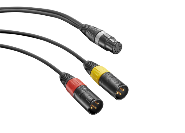 Cabo Y com um conector XLR 5 F e dois conectores XLR 3 M.