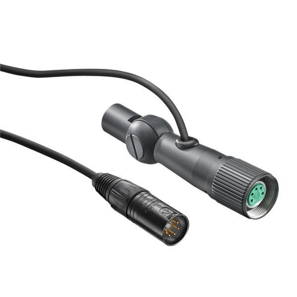 Microphone cable with rotatable swivel mount and XLR 5 connectors.