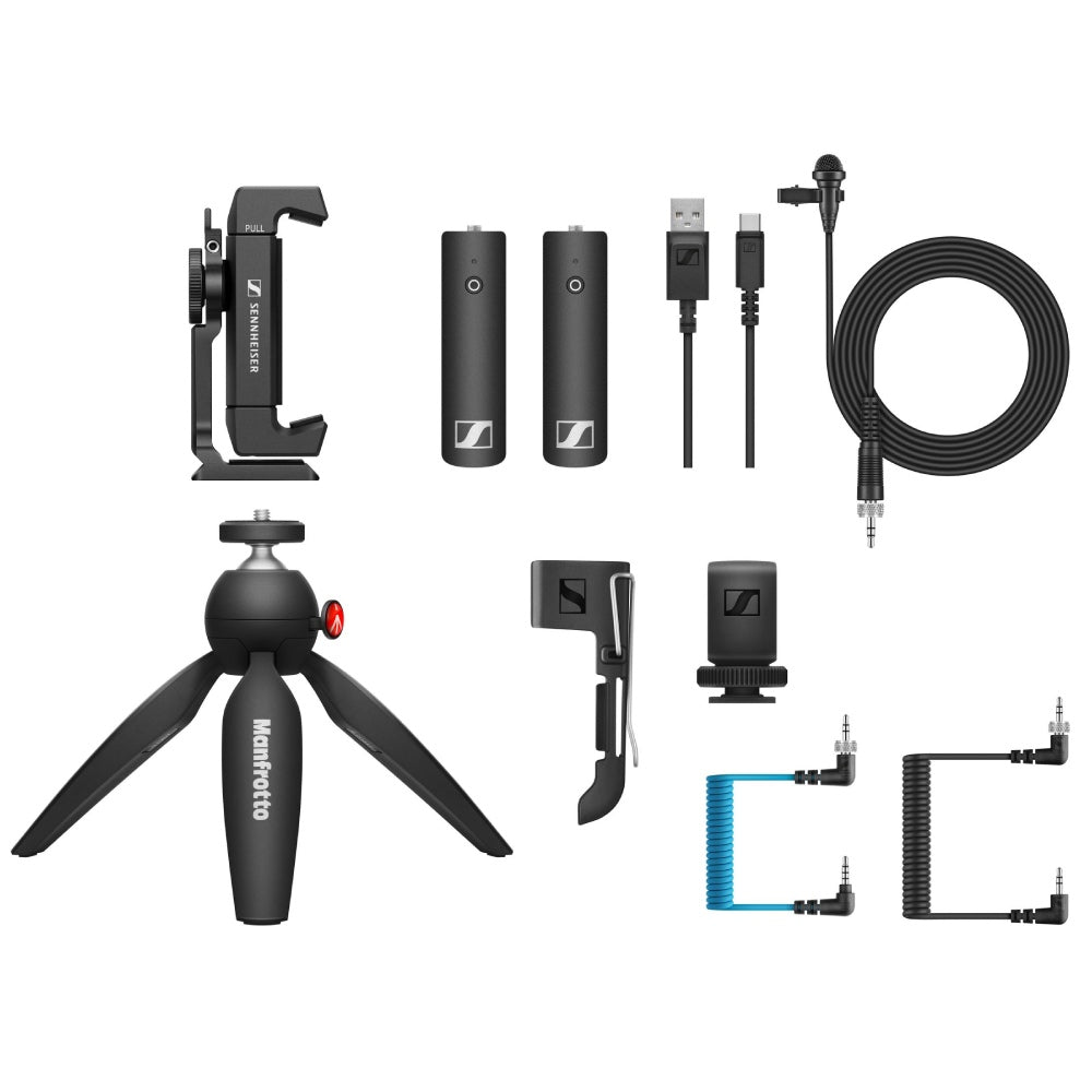 Projetado para vloggers e criadores de conteúdo em movimento, o kit móvel XSW-D Portable Lav inclui o conjunto de lapela portátil XSW-D da Sennheiser e o suporte para smartphone, bem como o Mini tripé Manfrotto PIXI. O Conjunto de lapela portátil XSW-D apresenta um sistema de lapela sem fio de 2,4 GHz completo, enquanto o suporte para smartphone permite a orientação retrato e paisagem. O Manfrotto PIXI possui uma cabeça de bola de bloqueio que pode ser ajustada com um botão para que você possa focar no seu conteúdo mais facilmente.