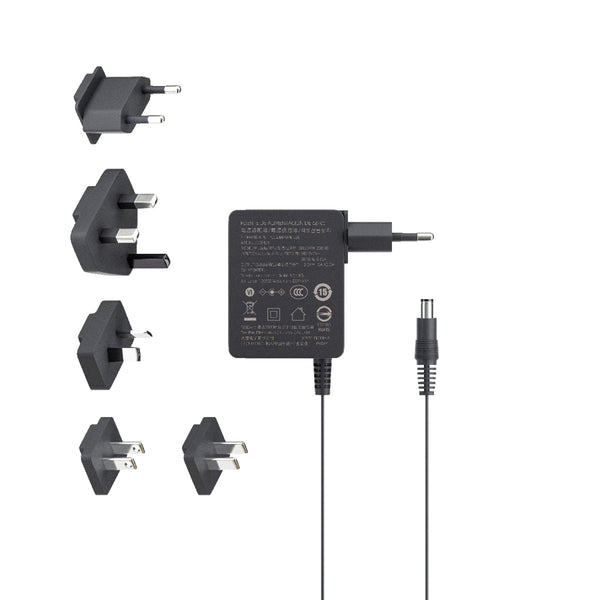 Adaptadores de tomada (EUA, Reino Unido, UE, Austrália, Coreia do Sul, China) estão incluídos para uso em todo o mundo.