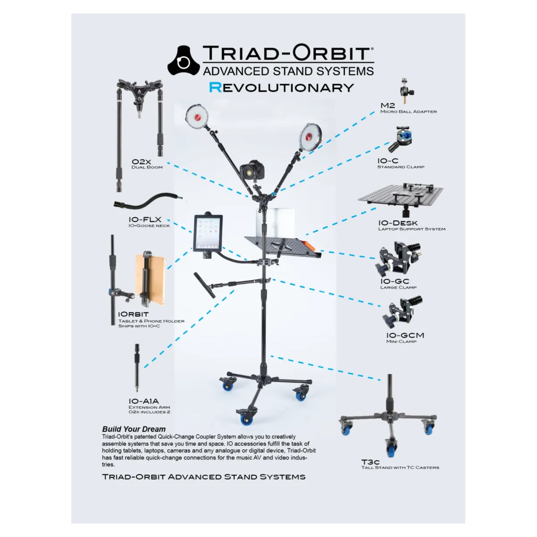Tall Tripod Stand System including (1) T3, (1) O1-L, and (1) M2