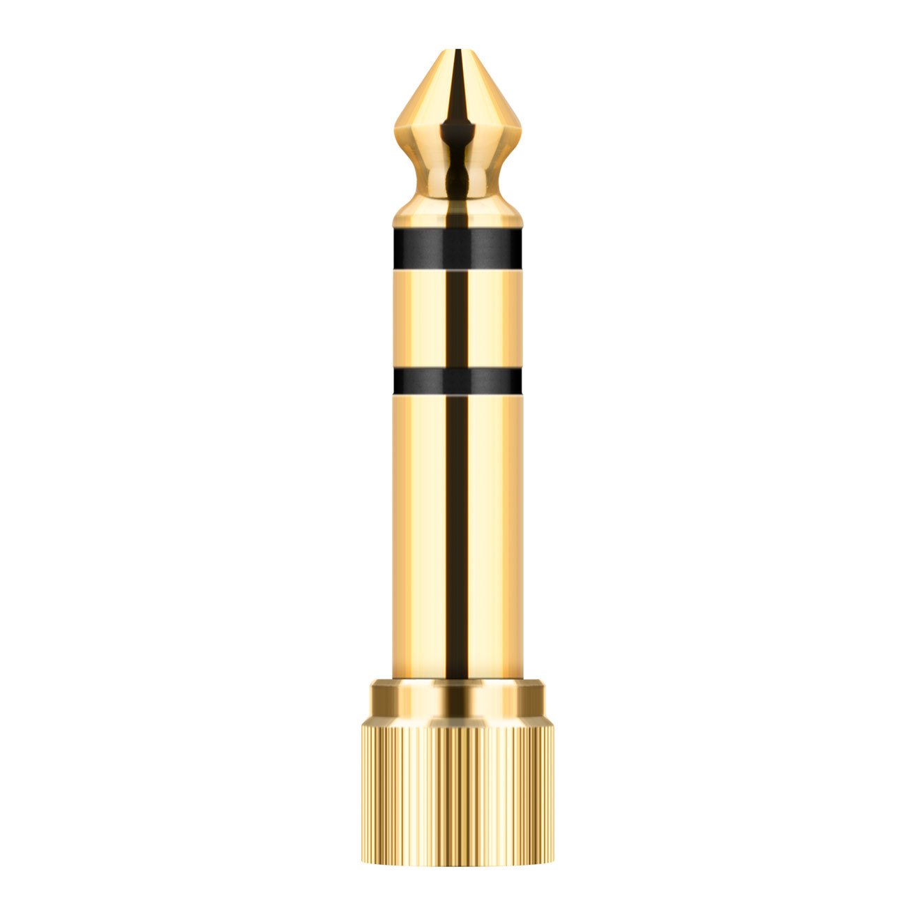 Adaptador jack 6.3S - soquete jack 3.5S, dourado, tipo parafuso.