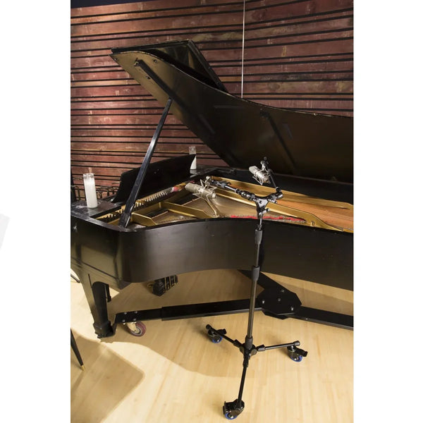 Ele possui um diâmetro de roda de 8cm e uma base máxima de 61cm. Com as pernas na posição mais estável, a altura máxima é de 192cm e a altura mínima é de 93cm. O peso do suporte (incluindo as rodas) é de 8 kg.