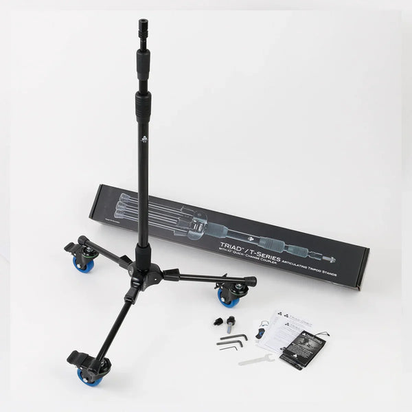 A Série Triad T3C é uma combinação de um suporte de tripé especial, pronto para rodízios, de 3 seções grandes e um conjunto de rodízios industriais de duplo travamento TC. Os rodízios são fáceis de instalar e remover, proporcionando uma utilidade versátil.